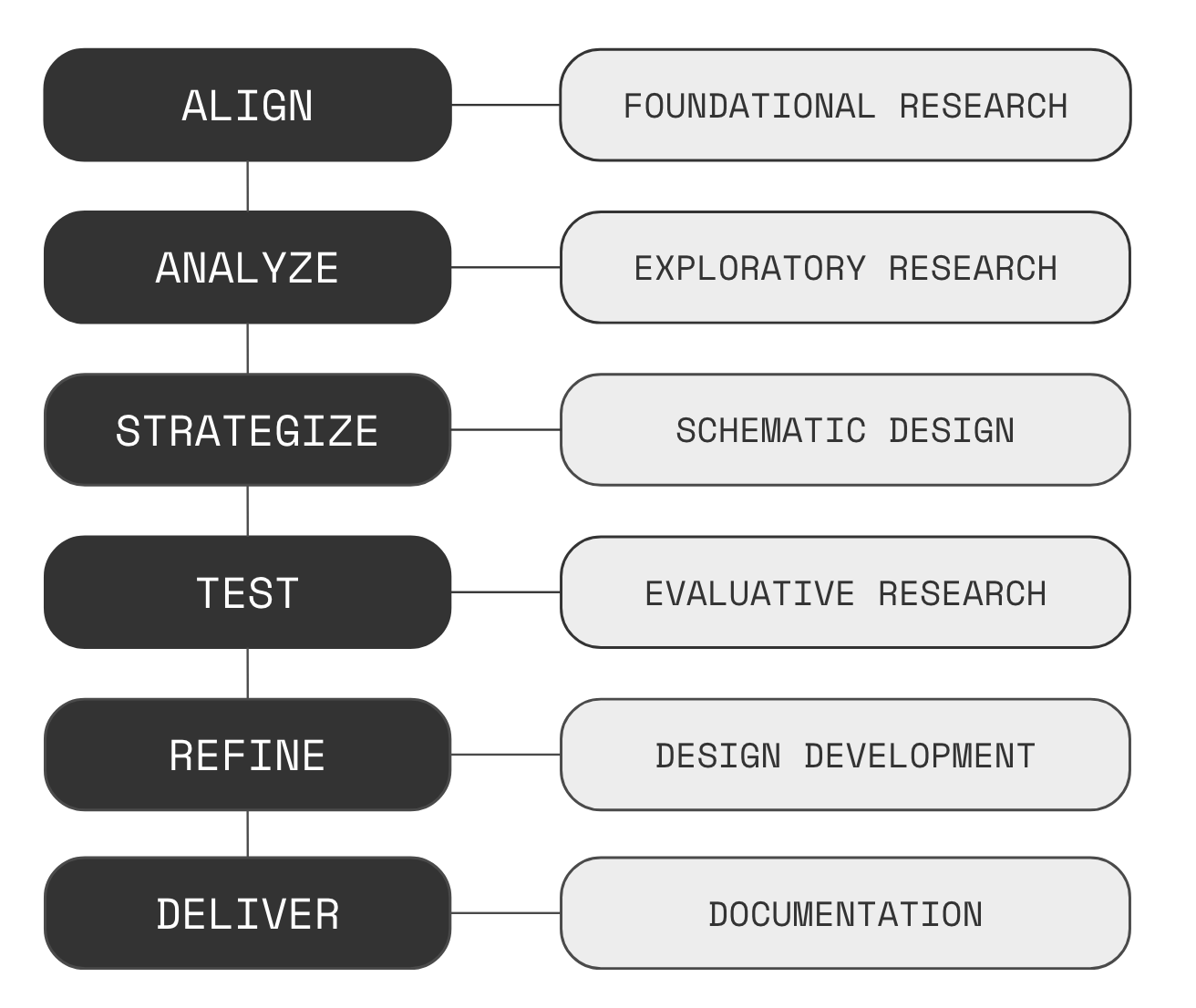 The studio workflow has a research and design cadence that transforms organizational principles into systems